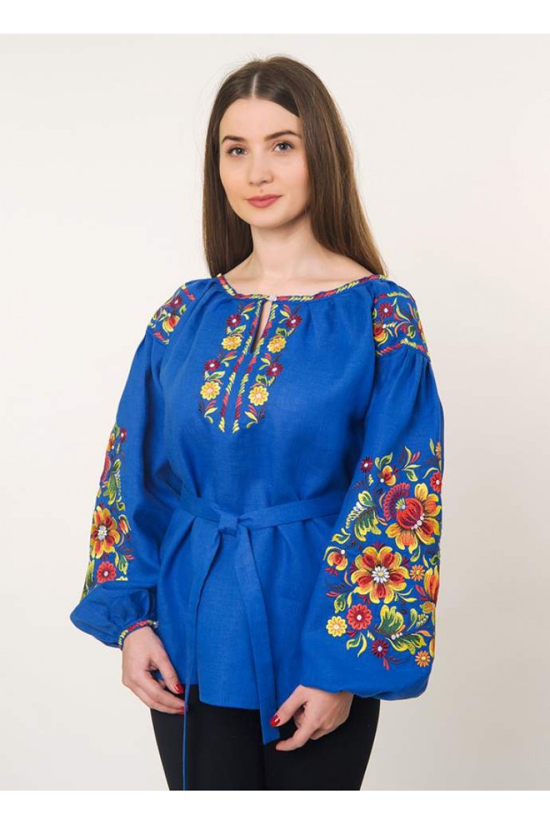 Blue women's embroidered shirt Petrykivka