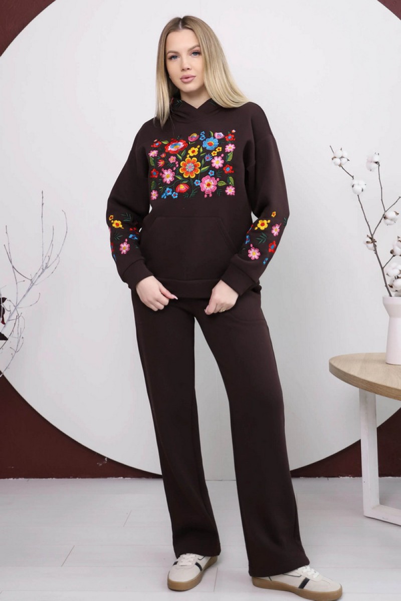 Women's winter suit with embroidery "Barvohrai" chocolate