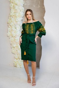 Популярные модели — миди и макси с поясом, свободным кроем или акцентом на талии. Вышивка может быть как лаконичной (небольшие элементы), так и более выразительной (по подолу или рукавам).