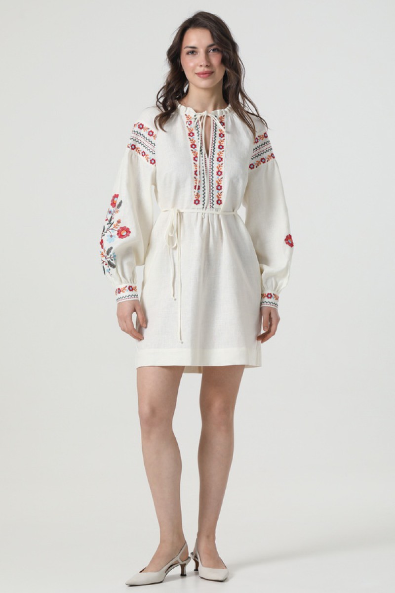 Вышитое платье-вышиванка из белого льна Ружина